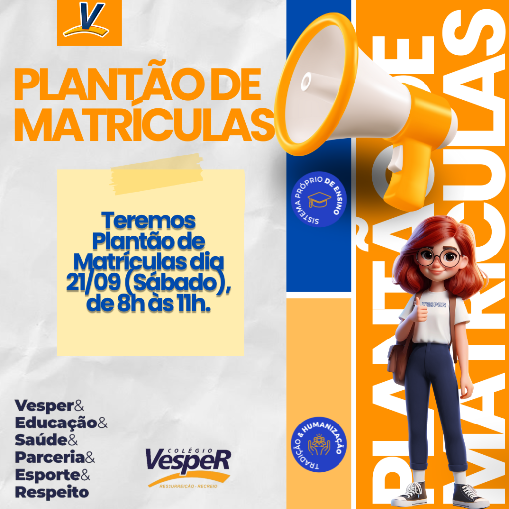 Teremos Plantão de Matrículas dia 21/09 (Sábado), de 8h às 11h.