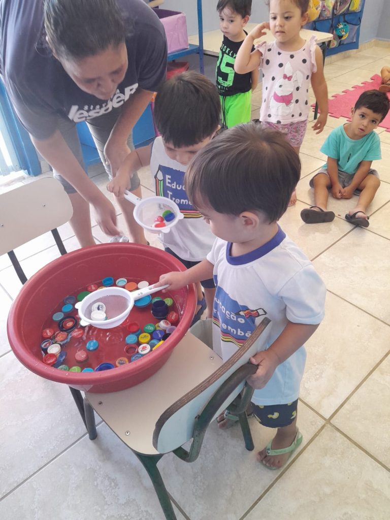 A brincadeira de pescaria com peneira é uma atividade lúdica que ajuda as crianças a desenvolver a coordenação motora, a concentração e a atenção.