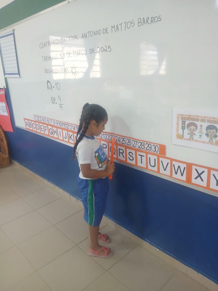 Hoje, a proposta foi uma atividade de alinhavo realizada em pequenos grupos no canto do movimento. As crianças foram desafiadas a encaixar a linha nos buracos e passá-la por todos, exercitando a coordenação motora fina e a concentração.
