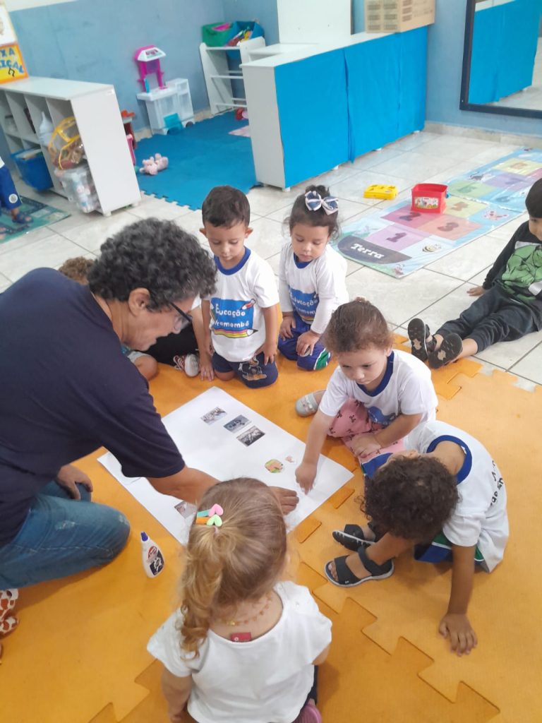 Hoje trabalhamos a história da Galinha Ruiva, de forma lúdica e participativa. As crianças trouxeram imagens de casa, e juntos criamos um cartaz coletivo, tornando o aprendizado mais significativo e envolvente.