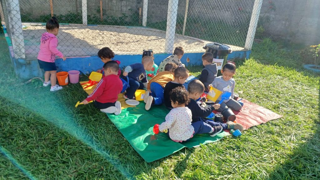 O Despertar da Leitura: Livro Cachinhos Dourados e Brincando no gramado e banho de so