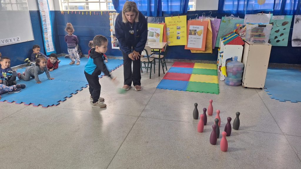 Atividade encontre o seu crachá no varal e Atividade com boliche.