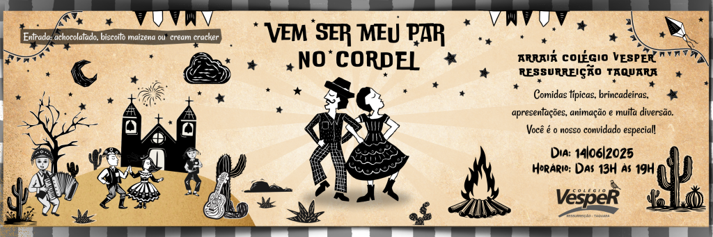 COLÉGIO VESPER RESSURREIÇÃO – Convidamos você para a nossa Festa Junina: “Vem ser meu par no Cordel”. Muita música, danças e diversão para toda a família.