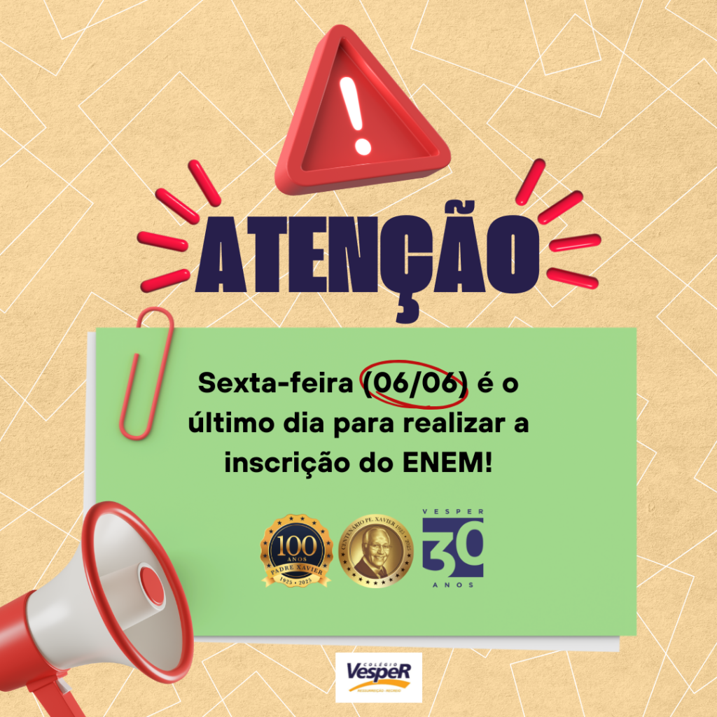 Lembrando que amanhã (06/06) é o último dia para realizar a inscrição para o ENEM!