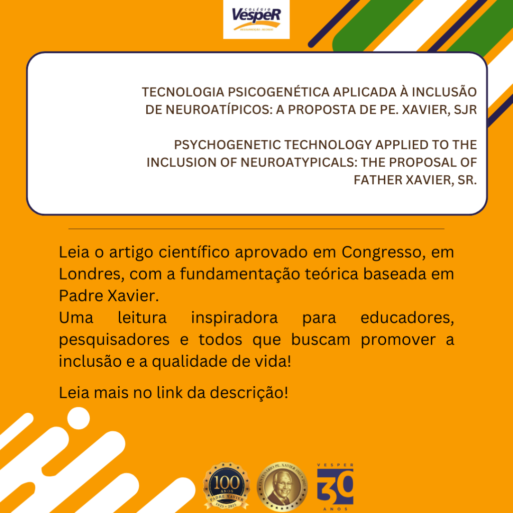 Leia o artigo científico aprovado em Congresso em Londres, com a fundamentação teórica baseada em Padre Xavier. Uma leitura inspiradora para educadores, pesquisadores e todos que buscam promover a inclusão e a qualidade de vida! Leia mais acessando o link: https://padlet.com/scientiarumhistoria/resumos-expandidos-lfvp9dzj2c3sieg2/wish/v3w8ZwgGgJGgZN52