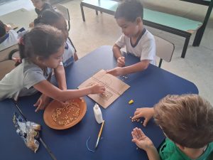Ateliê – Decorando as letras do alfabeto com materiais diversificados.