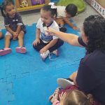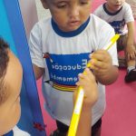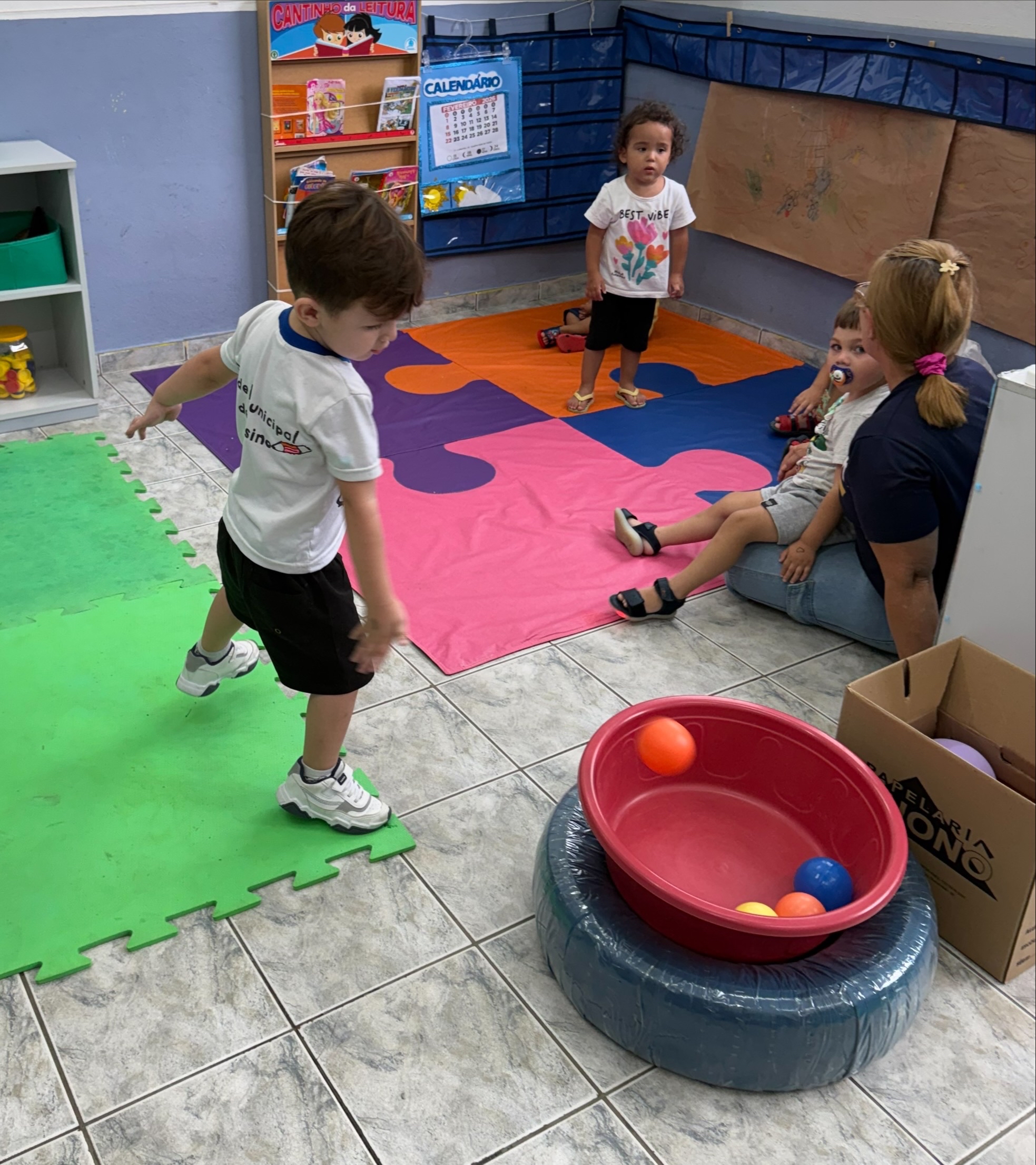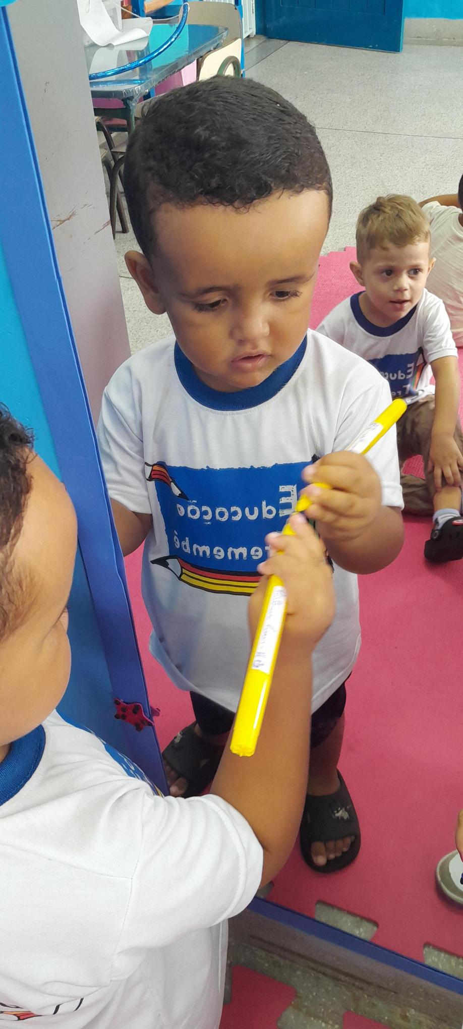 Na Creche Eliza Rossi Lima, as crianças do Nível II participaram de momentos especiais de aprendizado: na roda de conversa, se apresentaram e falaram seus nomes; no espelho, fizeram o próprio autorretrato, trabalhando identidade; e, no arremesso da bola no cesto, desenvolveram coordenação e concentração. Aprender brincando faz toda a diferença!