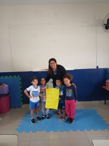 Os bebês participaram de um circuito psicomotor preparado para estimular o movimento, a curiosidade e o desenvolvimento motor. Entre colchonetes, almofadas e pequenos obstáculos, exploraram