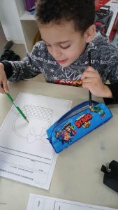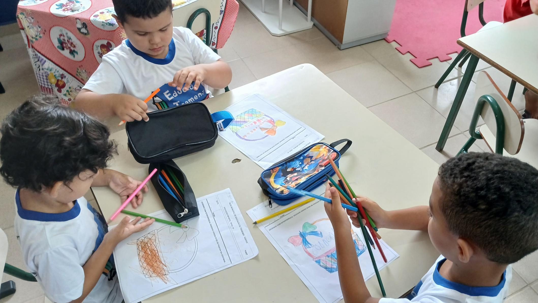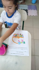 Desenho com interferência: Tema da Páscoa – Finalizar a cesta de Páscoa com ovos, depois colorir. Nível IV D.