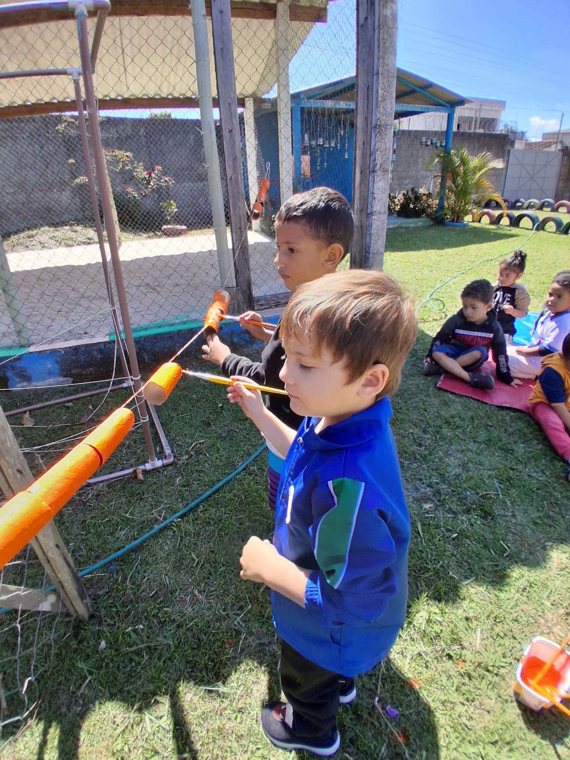 III B – Projeto de grupo: Pintura feita no rolinho de papel higiênico para confecção do dinossauro.