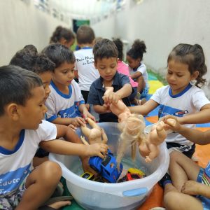 Lavando os brinquedos: Bonecas e carrinhos. Brincando na cabaninha.