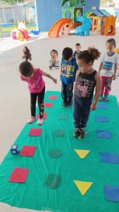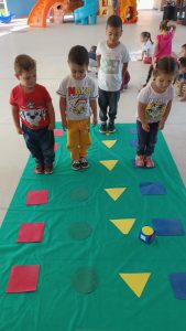 Linguagem visual, plástica e musical: tapete das formas geométricas.