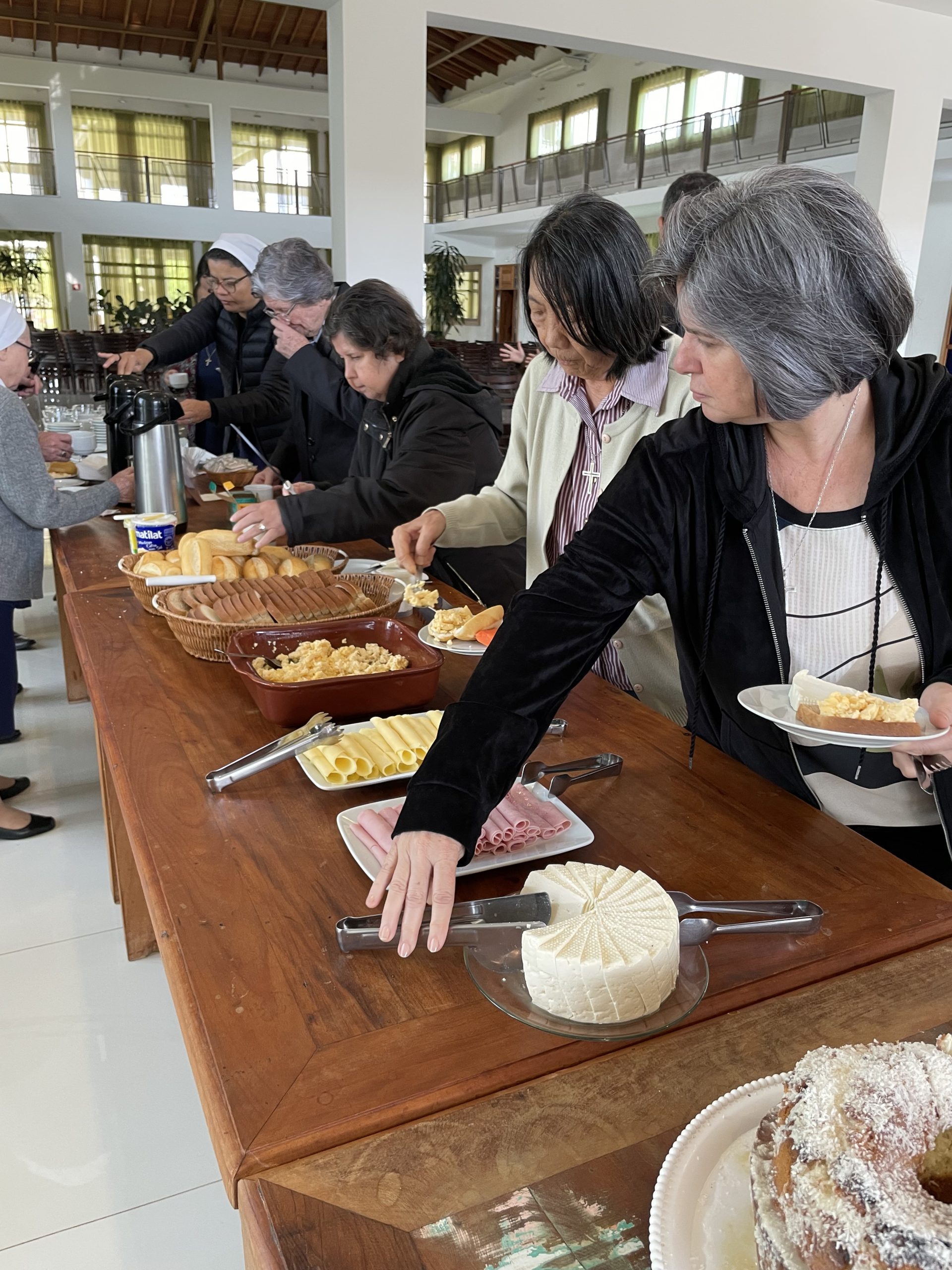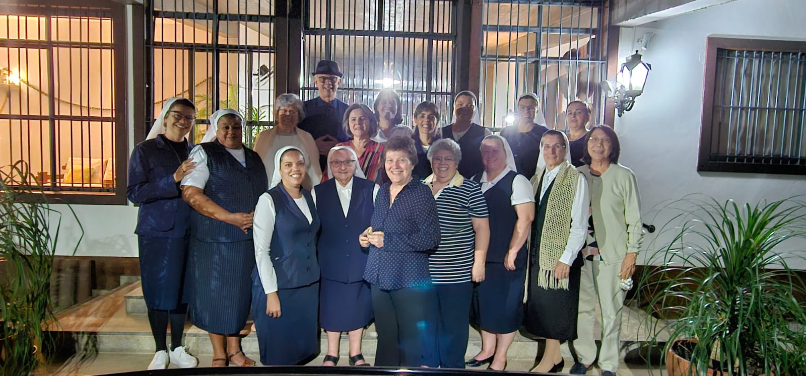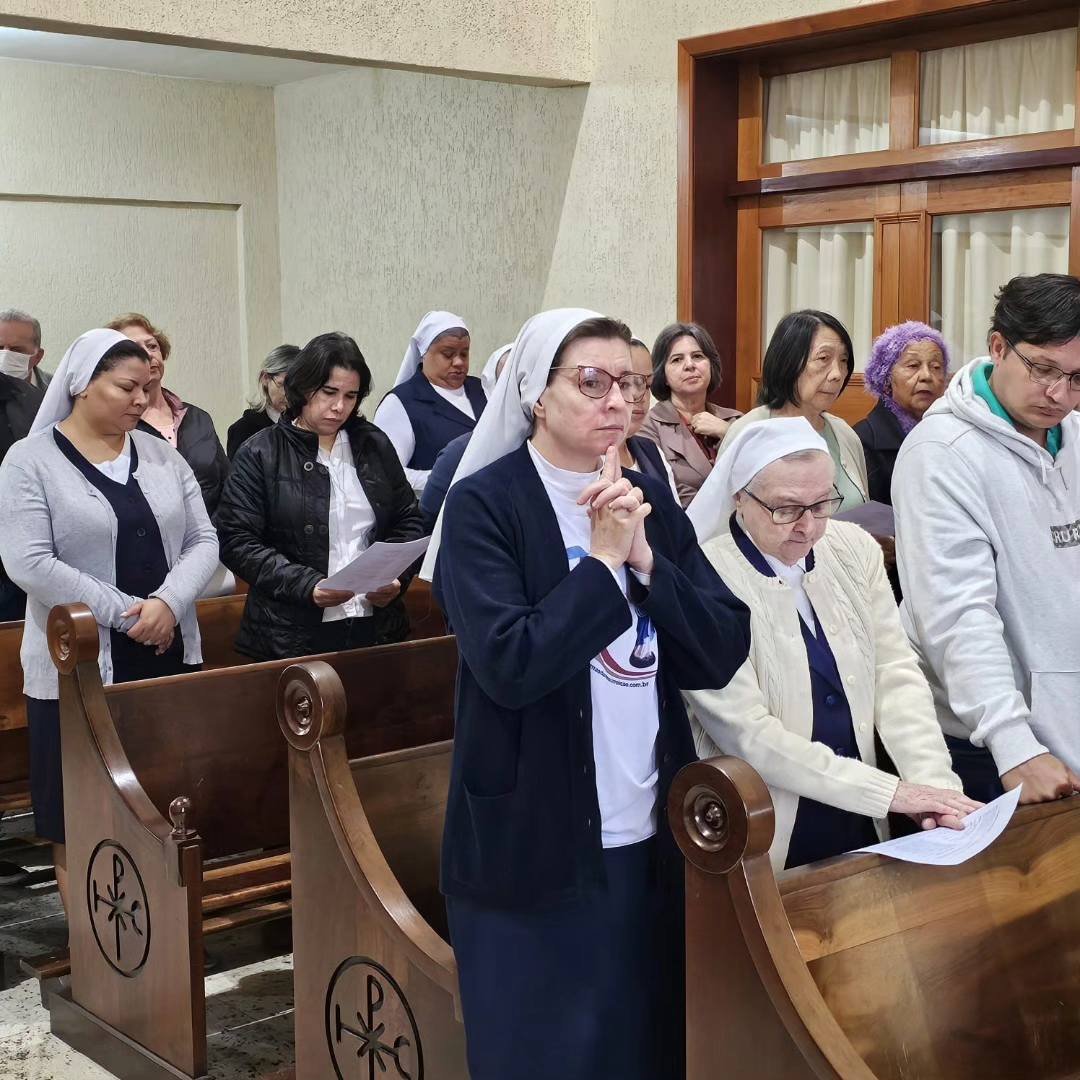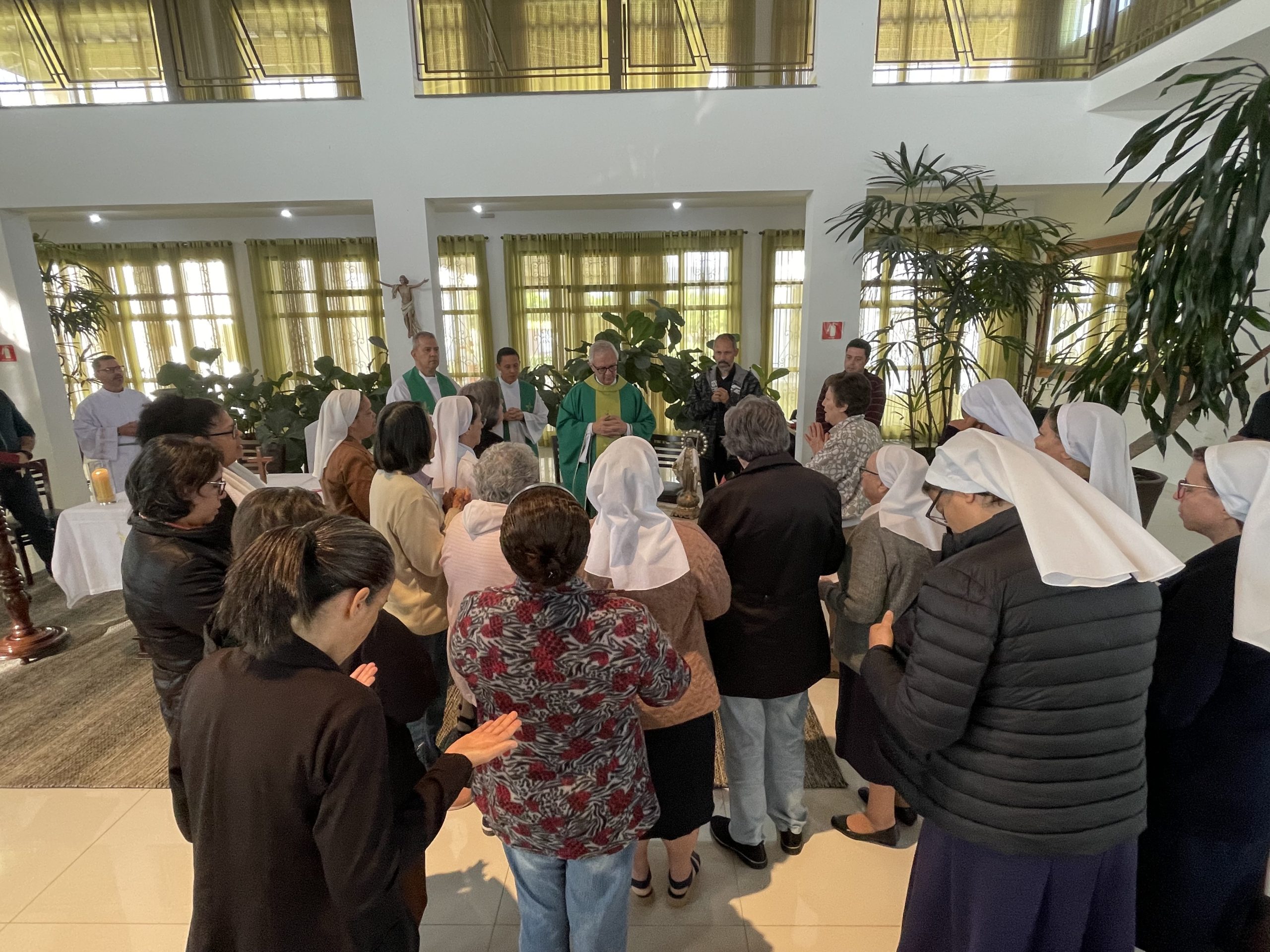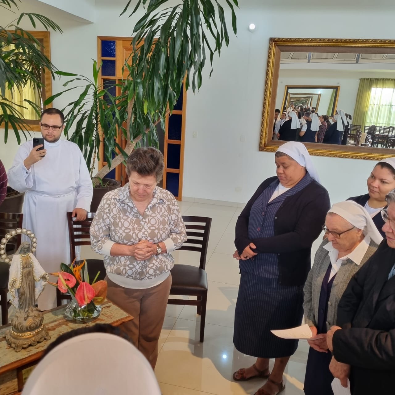Estavam presentes: Ir. Vanetti (Coordenadora Geral), Ir. Helena (Vice-coordenadora), Ir. Ana Rosa (Ecônoma), Ir. Rosangela (Secretária), Ir. Cláudia (Educação), Ir. Mariza (Assistência Social), Ir. Janaina (Pastoral), Ir. Umbelina, Ir. Neuza, Ir. Luciana, Ir. Edna, Ir. Rita, Ir. Lorayne, Ir. Creonice, Ir. Cidinha, Ir. Ivone, Ir. Kazume e Ir. Ideni. Foi um tempo de Oração, meditação, reflexão, celebração eucarística e deserto.